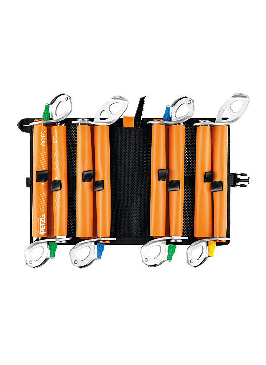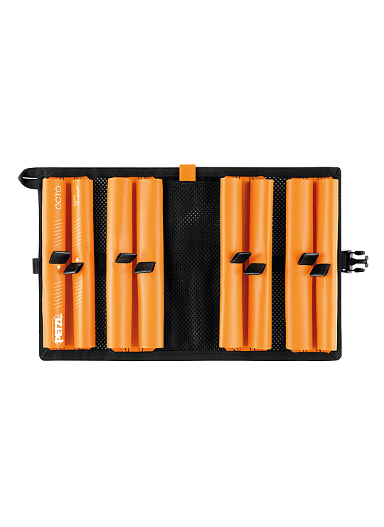 Het OCTO-etui is ontworpen om ijsschroeven op te bergen, te beschermen en te vervoeren. Het heeft acht vakken waarin een complete set van maximaal twaalf schroeven past en een gaasvak voor accessoires (vijl, reservepick...). Het etui kan eenvoudig worden opengevouwen, zodat je makkelijk bij je spullen kunt. Het etui kan worden opgehangen zonder de inhoud eruit te halen, wat handig is om het te laten drogen.
