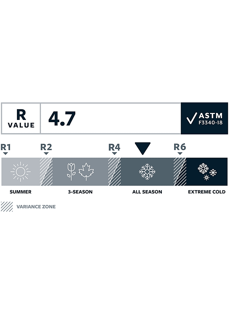 Regular Regular Wide Large Color Ember R-Value 4.7 Weight 710g 850g 910g Width 56 cm 66 cm 66 cm Length 185 cm 185 cm 198 cm Thickness 11.7 cm Packed dimension 14.5 cm x 24 cm 15.2 cm x 27.9 cm 15.2 cm x 27.9 cm What's Included Stuff sack